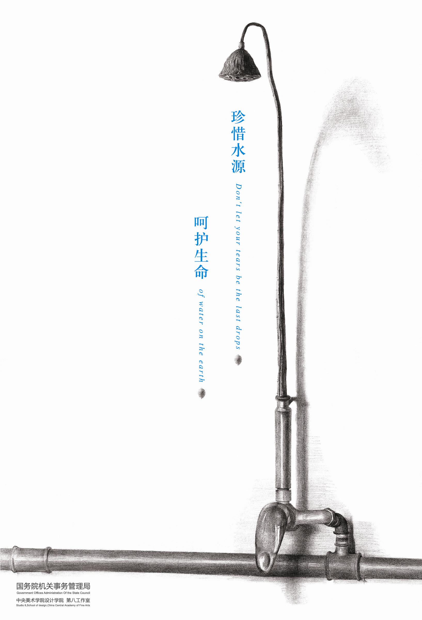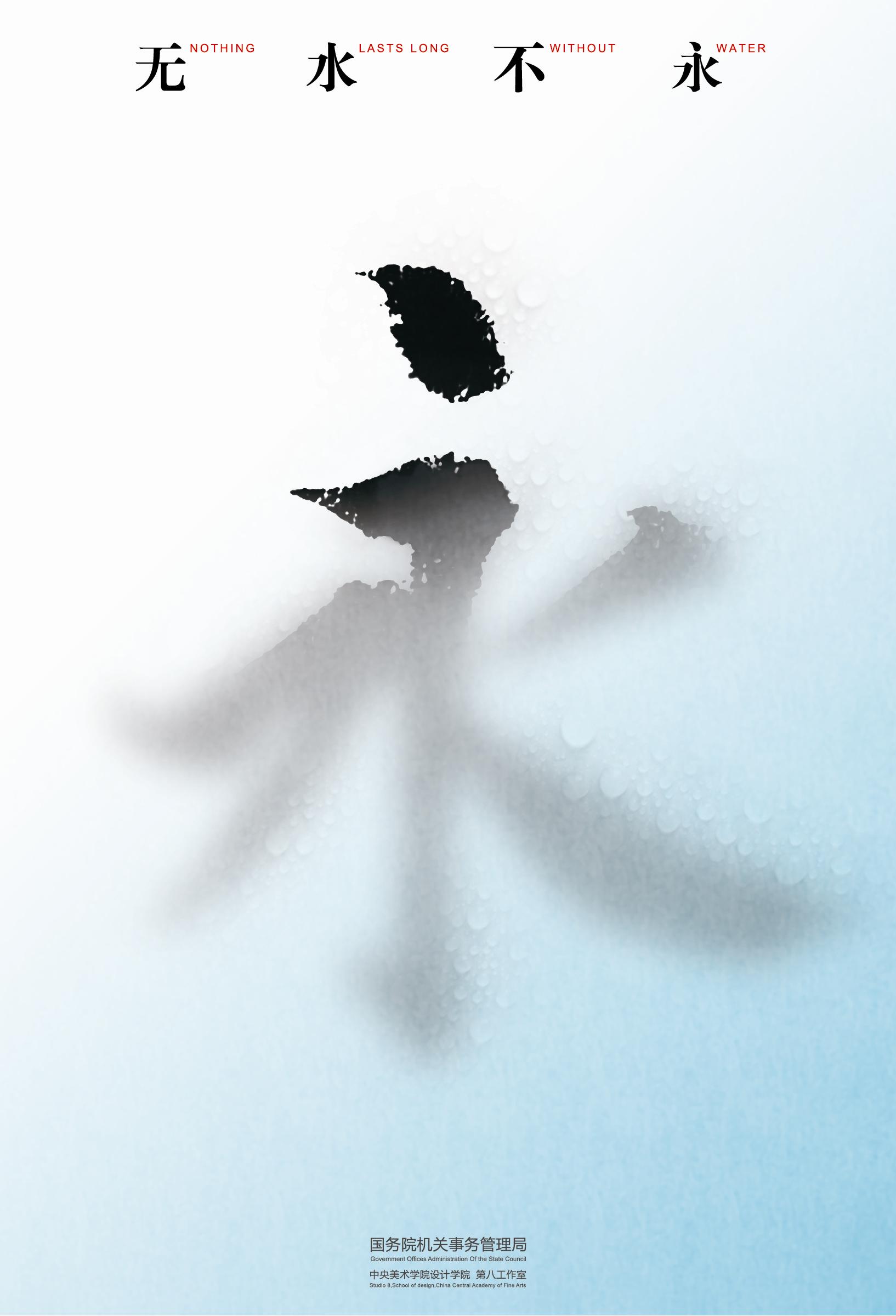 国务院机关事务管理局有关方面负责同志在发布会上介绍,今年全国公共机构节能宣传周将于6月11日至17日开展,主题为“珍惜生命之源,人人节水护水”。当前我国水资源面临的形势十分严峻、水污染严重、水生态环境恶化等问题日益突出,已成为制约经济社会可持续发展的主要瓶颈之一。公共机构节能,特别是党政机关节能作为全社会节能减排的重点领域,率先做好工作,发挥示范作用,对于引领全社会节水护水具有重要意义。宣传周期间,国务院机关事务管理局将组织开展系列宣传活动,在各级各类公共机构张贴宣传海报是其中一项重要内容。为此,国务院机关事务局委托中央美术学院第八工作室设计制作了这套公共机构节能宣传海报,并组织专家进行了评审,《无水不永》被评为本次设计活动一等奖。